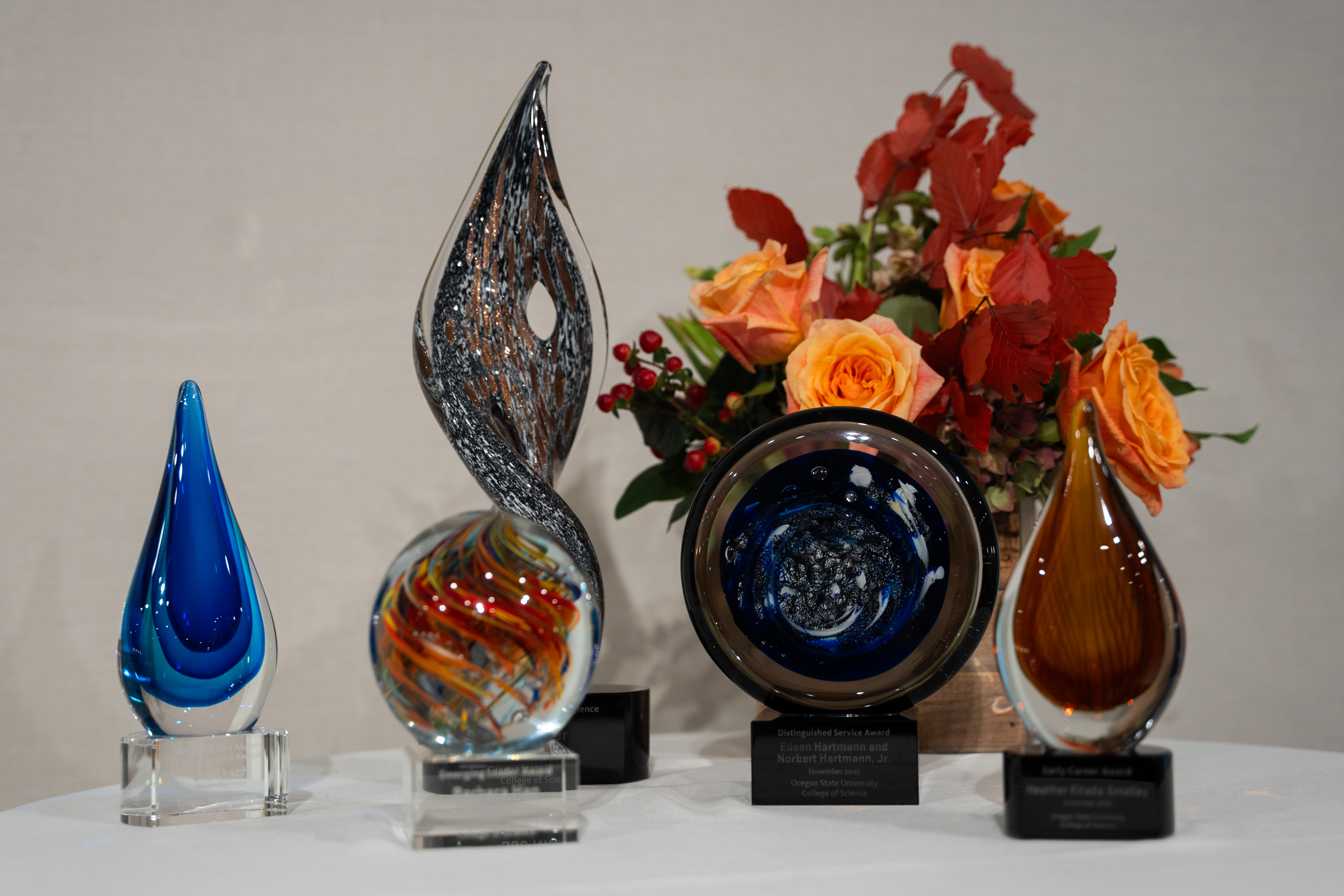 Heather Kitada Smalley ('18) received the Early Career Award; Barbara Han ('09) received the Emerging Leader Award; Eileen ('74, '76) and Norbert Hartmann received the Distinguished Service Award; William (Bill) Skach received the Distinguished Alumni Award; and Joe Nimbler ('63) received the Lifetime Achievement in Science Award.